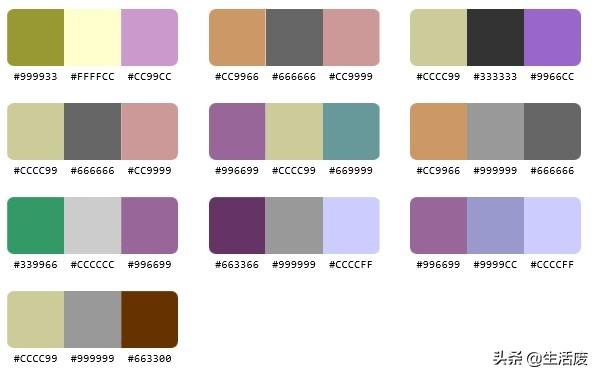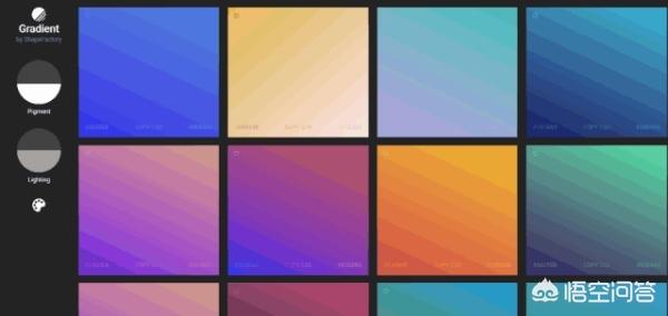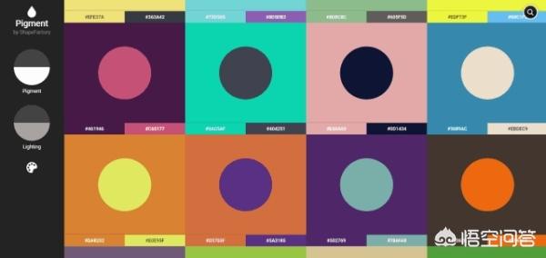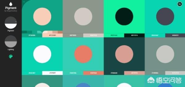 里面提供大量的配色方案,当你选择一个颜色之后,它将给到相应的配色方案,通过滑块选择强度和亮度。颜色值即可复制。