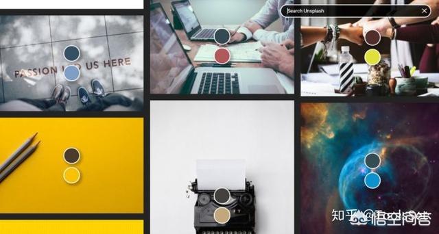 同时还支持搜索图片自动提取图片的配色。点击搜索按钮后,他会在Unsplash里搜索图片,并且智能识别出它的主要配色。强大不!