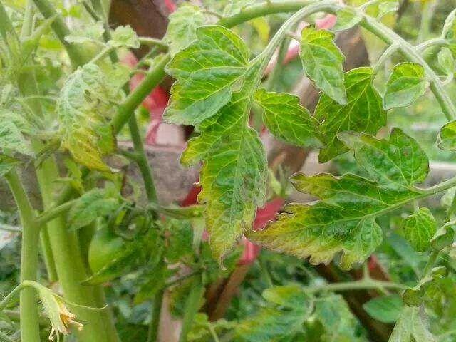 5、缺镁:番茄缺镁时,新生叶片卷曲,中下部叶片普遍黄化,并由下往上发展。叶绿素含量低,叶片黄化,光合作用微弱,严重影响营养的积累,可造成大幅度的减产。