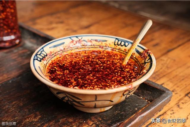 2.油泼辣子调配,准备辣椒粉30克,熟芝麻3克,盐1克,油60克,十三香1勺,蒜瓣2瓣,姜4片,花椒适量,八角1个,桂皮1个,香叶少许,辣椒粉熟芝麻拌匀,加入盐十三香混合均匀,起锅烧油至8成热时放入香料,中小火将香料炸至微黄捞出转小火,先将一部分油浇在上面搅拌均匀,再浇一部分在拌匀,最后全部浇入搅拌均匀即可。