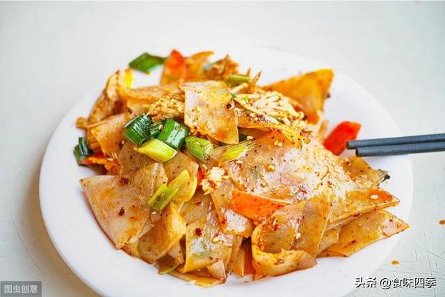 装盘,一份美味的炒面皮诞生啦!准备开吃……