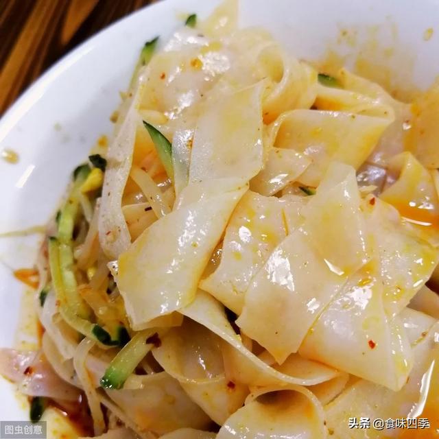 大家好我是食味四季,我的回答是:面皮一种发源于陕西的经典小吃,其口感软滑,筋道弹牙,但是陕西各地制作的原料不同,所以叫也有所区别,陕南地区多用糙米磨成细粉制作而成,色泽明亮,口感更加润滑,所以又叫做米皮,关中地区则多用面粉制作而成,其颜色虽不如米皮那么明亮,但是它的料汁,吸附能力强,搅拌之后味美至极,今天就分享具体做法