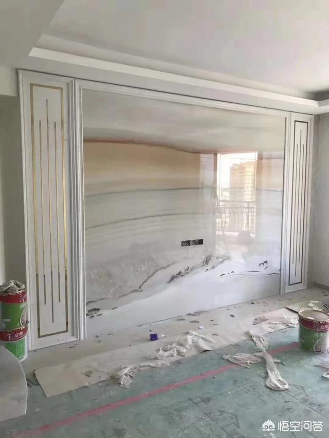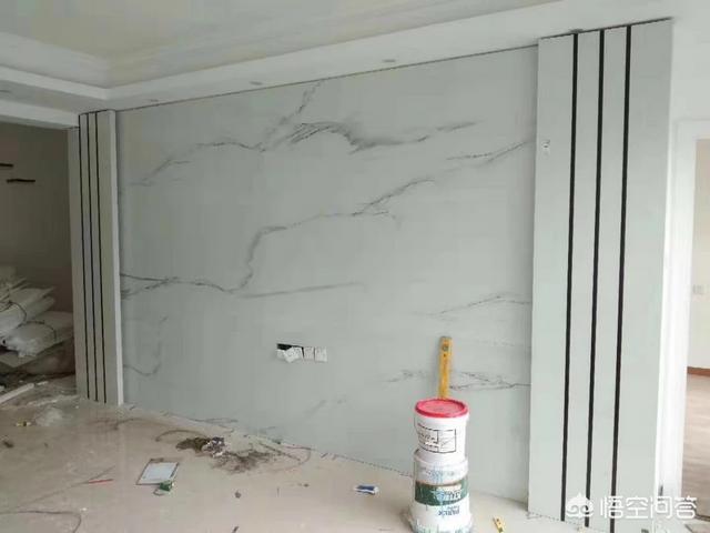 你好,我是室内设计师。跟大家说一下,这个墙面影视墙关于大理石这一块。