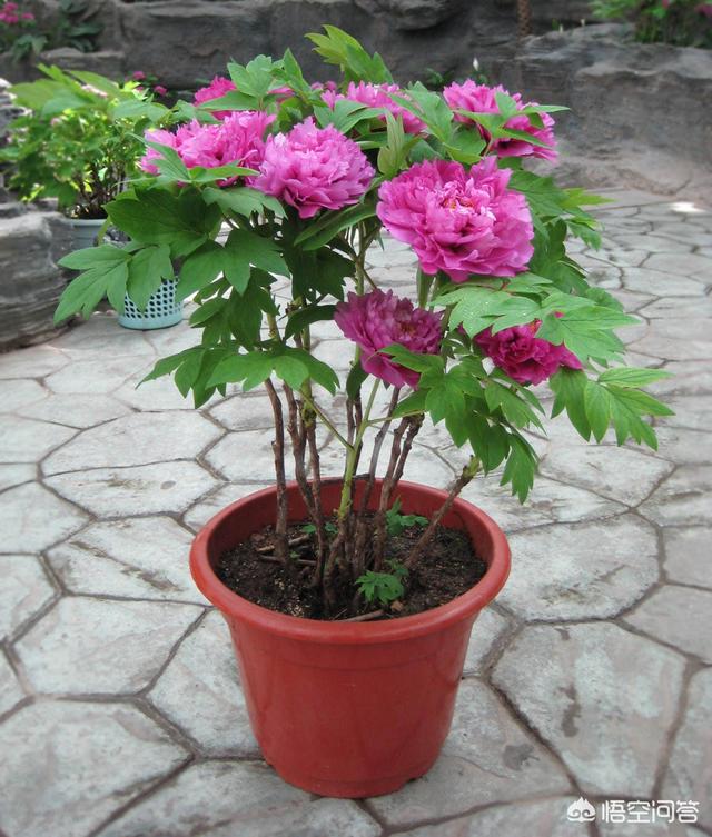 新上盆的牡丹不着急施肥,得等新根透土。得看牡丹叶色再决定怎么施肥。