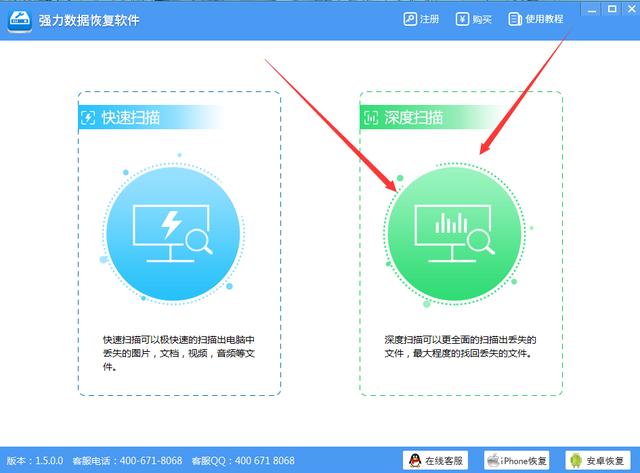 安装强力数据恢复软件在电脑上,然后运行软件选择“深度扫描”来对硬盘进行扫描