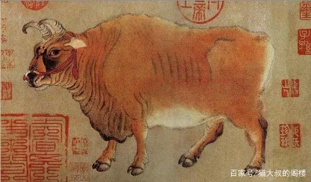 这幅图为唐代韩滉所作,他是唐代著名宰相,以画牛著称,他所画的牛憨态可掬,栩栩如生。这幅画在八国联军入侵的时候流落海外。