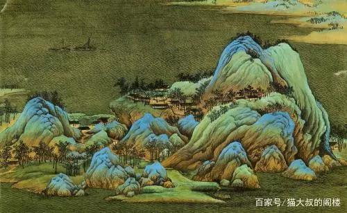 这幅是北宋时期的王希孟所作,画里描绘了烟波浩渺的江湖和波澜起伏的山峦,亭台水榭,野市渔村,是中国传统山水画中罕见的巨著。表现了作者对美好生活的无限向往。