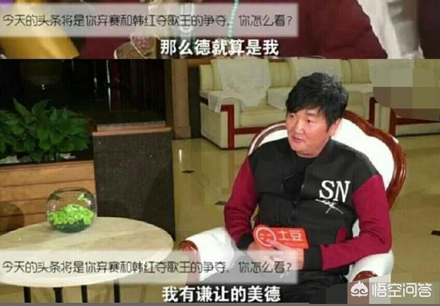 孙楠这次突然的退散,我们先不讨论对节目组对赛制的影响。我们先看看事后孙楠接受的一段采访:主持人问:宣布退赛有没有想过会造成直播事故?孙楠不慢不急地回答:“我觉得首先从数据来说,电视台收视数据很高,还有对汪涵的评价很高,他应该谢谢我。”主持人又问:“今天的头条将是你弃赛和韩红夺得歌王,你怎么看”孙楠的回答是:“这说明我们老一辈艺术家德艺双馨,有艺的是韩红,那么德就是我,我有谦让的美德。”