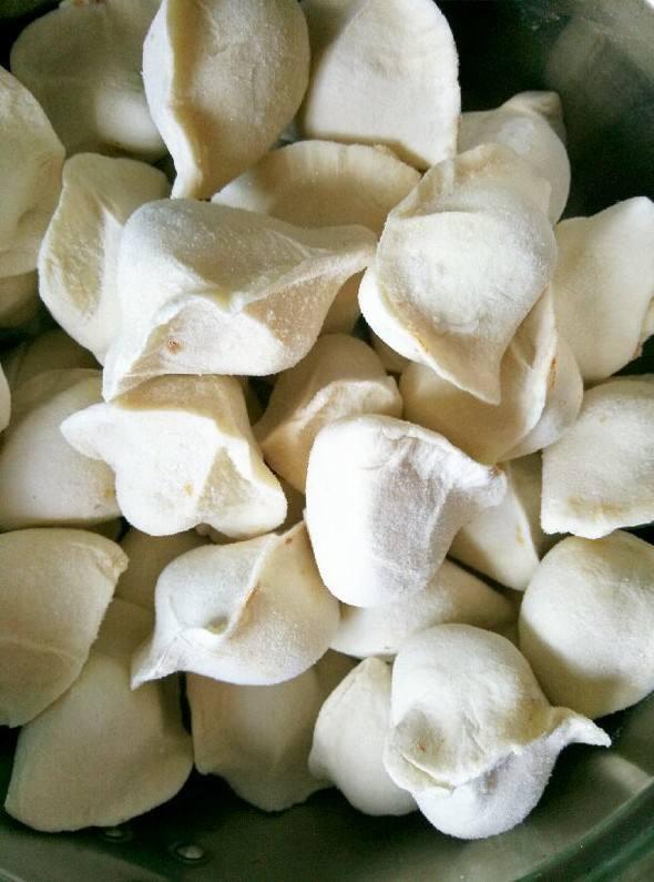 4,不着急的话,最好的办法就是,将饺子取出来倒在案板上,自然解冻后,轻轻分开即可