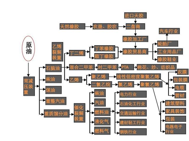 主要说说石油的产品系,且看下面以原油为原材料的石油产品图谱