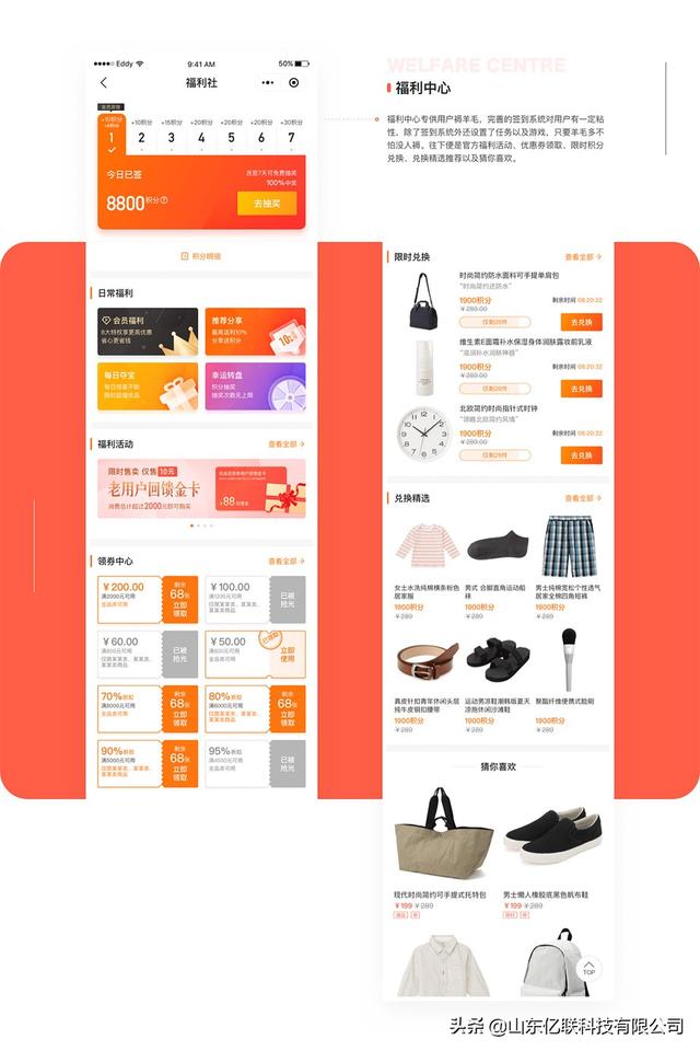 4、福利中心专供用户薅羊毛,完善的签到系统对用户有一定粘性,除了签到系统外还设置了任务以及游戏,只要羊毛多不怕没人薅。往下便是官方福利活动、优惠券领取、限时积分兑换、兑换精选以及猜你喜欢。