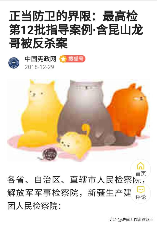 第一,“昆山龙哥被反杀案”绝对是我国刑法史上正当防卫的里程碑,被最高人民检察院选为第12期指导性案例,通过案例指导肯定了“法不能向不法让步”的秩序理念,明确防卫人以对等或超过的强度予以反击,即使造成不法侵害人伤亡,也不必顾虑可能成立防卫过当因而构成犯罪的问题。