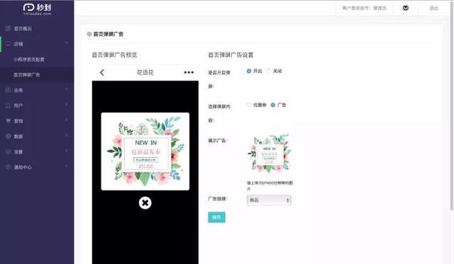 ▲秒到后台设置弹屏广告