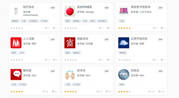 在上面,你也能立刻用上玩物志、解忧室、荔枝 FM 播客、轻芒杂志、好奇心日报等高品质的小程序。
