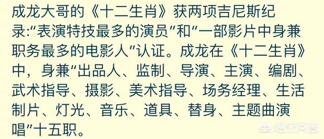 看到这个问题我就想起2012年成龙大哥的电影《十二生肖》。这部电影创下了两项吉尼斯纪录,其中一项就是成龙身兼该电影出品人、监制、导演、编剧、制片、主演等十五职,而去年大热的《战狼》吴京同样是身兼多职。 那么问题来了,影视剧当中监制、制片、出品、编剧、导演等职务到底具体负责的是什么工作,为什么一部影视剧中一人能身揽多职?