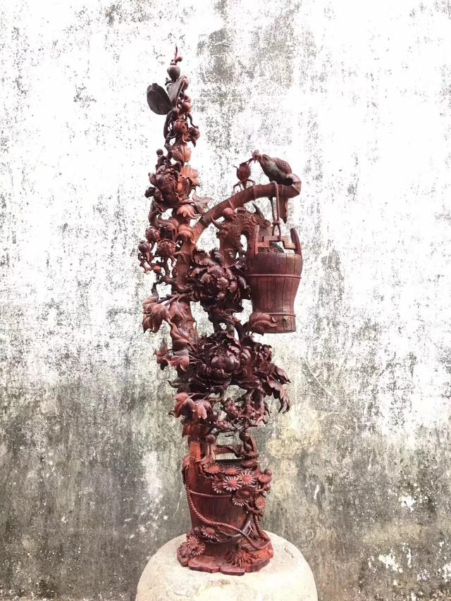 2——表现形式:木雕艺术品可以从两个方面欣赏,一是形,二是意;形是作品所用的形象,意是在形象基础上体现出来的寓意,两者相辅相成,各具特色,形意结合是木雕艺术最常见的形式和特点
