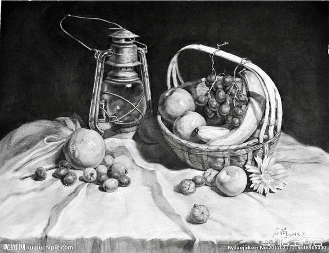 篮子一定要画整体型,然后再画细节,不能丢了整体型明暗,如果基础不够扎实,建议多临摹一下默过,借鉴别人的画法,自己考试也就知道怎么画了,这有几个图给你参考一下临摹