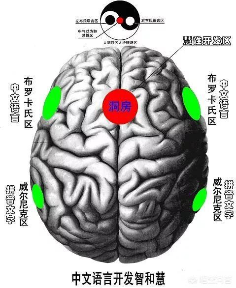 由于汉语语言区在大脑的独特位置,会同时启动和使用左右脑,故使用汉字和汉语,比使用西方语言更容易同时协同开发左右脑。根据这一研究成果,我们再结合美国科学家在灵感产生的测试结果研究中的发现,就可以知道,人类灵感在大脑中发生的区域,就在大脑额叶的中央区,就是大脑中央阴阳和合、中气以为和的地方。