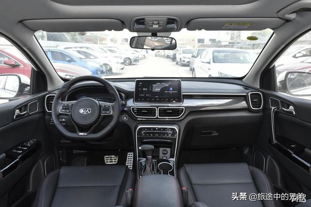 新款KX5的配置水平只能说中规中矩,全系标配4个气囊、胎压监测和ESP,另外,无钥匙进入和一键启动、倒车影像、10寸大屏、LED大灯、皮质座椅都是全系标配。整体配置水平说得过去。两款顶配车型还有主动刹车、车道偏离预警,但ACC自适应巡航却要加钱选装,有点搞不懂。