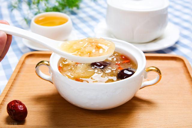 银耳要充分泡发。去掉银耳根部的黄色部分,那个会影响口感。