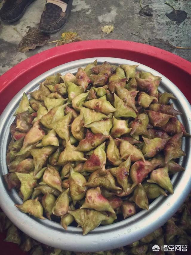 菱角有两种,野生的和被训化的。嗯,被驯化过的大一些,一个顶野菱角三四个,多吃几个就饱了。