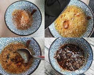 2、将花椒面、孜然面、熟芝麻倒入冷却后的酱汁中搅拌均匀即可。