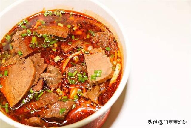 2.红油牛肉粉。筋道的宽粉,卤制入味的牛肉,鲜甜的汤汁,再来上一勺醇厚的红油,色香味俱全。