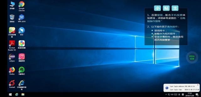点击桌面上的“手机电脑”,只需一键登录就可以进入到云电脑桌面。云桌面就是一个云端电脑,windows系统和桌面。有了windows系统的电脑,下班途中,工作外出,休假等电脑不在身边,电脑没有网络等情况下,需要紧急处理工作而电脑无法使用的时候,你一定需要他了可以轻松打开word,编辑内容,甚至登录邮箱接收和发送邮件。