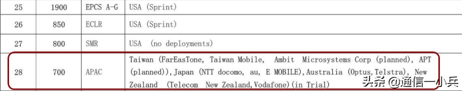 从相关的资料可以查询到,目前全球主要的使用n28这个频段的主要是日本、台湾、澳大利亚、新西兰的运营商。