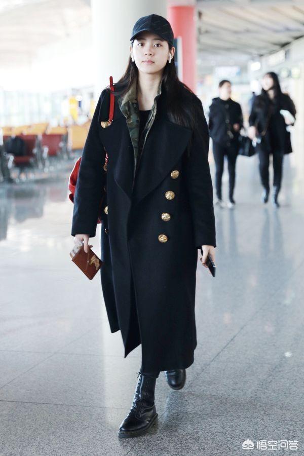 Burberry黑色双排扣大衣,挺括有型,内搭迷彩衬衫,叠穿方式增加了层次感和中性风,整体造型大气利落。