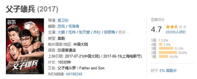 从今夏的《父子雄兵》的市场反应就能看出,大鹏的模式已经不是那么吸引观众的注意了,从刚开始的《煎饼侠》以人物逆袭奋斗史的感人和共鸣获得了一大票忠实的粉丝后,在《父子雄兵》中再一次使用已经是捉襟见肘,现在《缝纫机乐队》也是同样的套路,我为啥不去看《煎饼侠》?