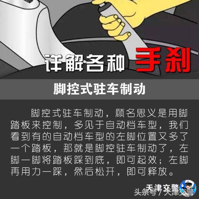 驻车制动,俗称“手刹”,因为越来越多的驻车制动不再用手来完成驻车动作,所以“手刹”一词也变得不再“名副其实”。花样繁多的驻车制动系统总是让人不知所措,特别是对于新手来说,毕竟找不到车子的“手刹”确实是一件尴尬的事情。下面就一起来见识一下各式各样的“手刹”。