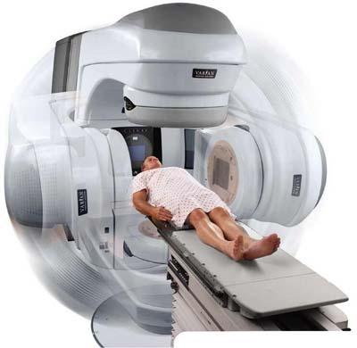 放射疗法是用X线,γ线、电子线等放射线照射在癌组织,由于放射线的生物学作用,能最大量的杀伤癌组织,破坏癌组织,使其缩小。其原理是依据大量的放射线所带的能量可破坏细胞的染色体,使细胞生长停止。所以可用于对抗快速生长分裂的癌细胞。放射线治疗最常作为直接或辅助治疗癌症的方式。此外骨髓移植前,也必须进行全身的放射线照射,以消除所有恶性的细胞。