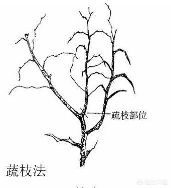 方法:疏枝也叫疏剪、疏间。就是把过密枣头、病虫枝、内膛细弱枝、无用的徒长枝、下垂枝、交叉枝等枝条从基部剪去,(见下图)。