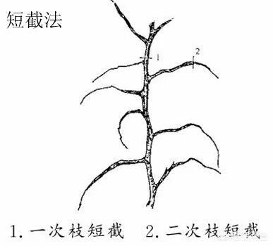 方法:把枣头一次枝或二次枝的一部分剪掉,在修剪中要根据树势、空间和不同的目的采取不同程度的短截措施。(见下图)。