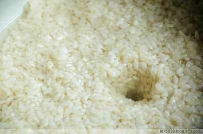 (2)浸泡:把粗糙的糯米浸泡半天即可。