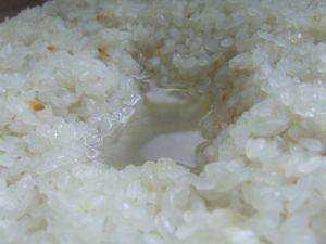 (3)蒸米:入米进锅蒸,又称蒸酒,蒸米环节很重要,先用大火加热,沸后再用文火,将米蒸熟蒸透,而又不糊不焦(如果米粒焦糊,黄酒将有残味,制酒失败)。注:自己食用现在高压锅即可,比米饭干一点,颗粒状。
