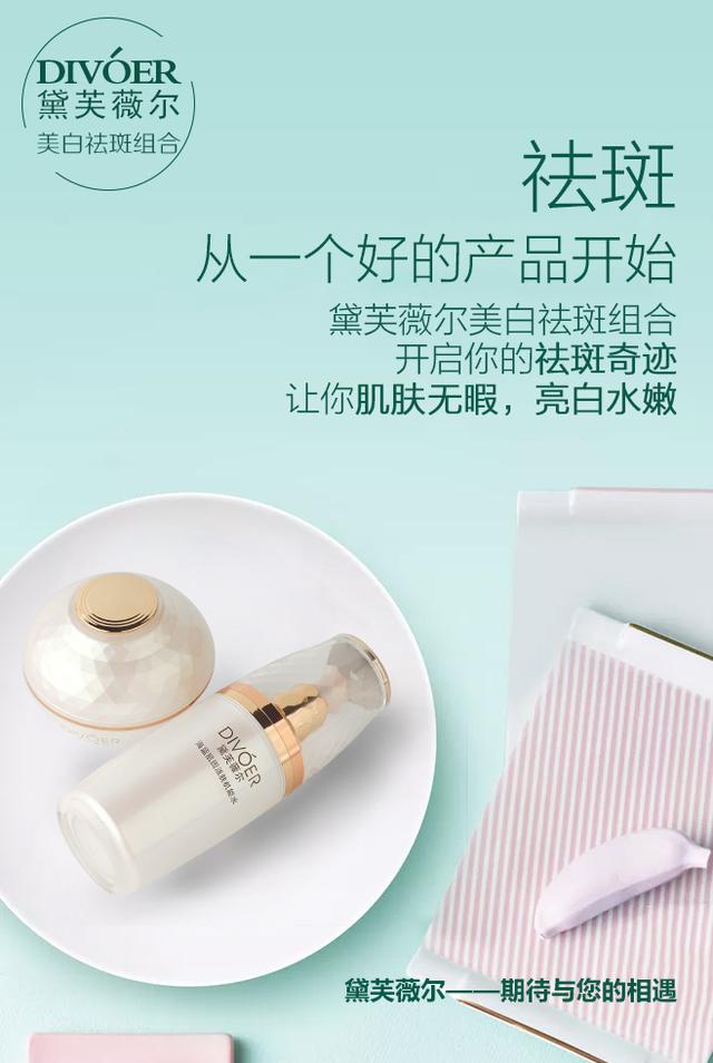 黛芙薇尔利用DNA分子水溶补给技术,研发出独有的DNA修复精华素,并颠覆了传统观念中的皮肤外在保养机制,从皮肤深层着手,其精华中所含的超小分子活性成分吸收性强、渗透性强,能够穿透三层皮肤组织,渗透表皮层、基底层,直击"斑"源吸除黑色素,真正实现从根源上祛斑,层层淡化潜在色斑、肌肤表面的微小色斑、雀斑、黄褐斑、日晒斑、辐射斑等斑点问题,直至消失,使肌肤达到通透白皙无暇的完美效果。