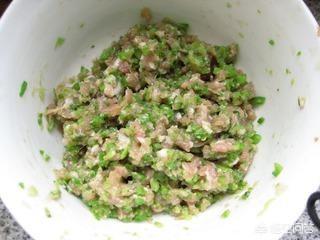 1、青椒剁碎,挤去水分与肉馅、虾皮混合,加入所有调料搅匀成馅。