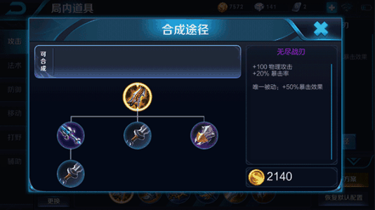 无尽战刃120物理伤害20%暴击率,唯一被动增加50%暴击效果