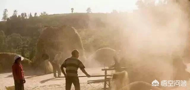 扬麦场景,那时候还可以用的是自然风,还得看老天脾气。扬麦的确是一个难以掌握的技术,一个真正的庄稼汉是必须掌握的。麦粒和麦穗分离要经过很多次扬场分离。年龄越大的人扬场水平越高,尘土和柴屑飞走了,麦粒堆积的很干净。