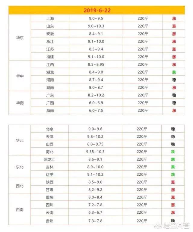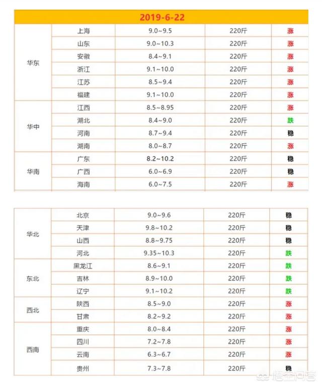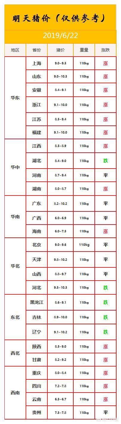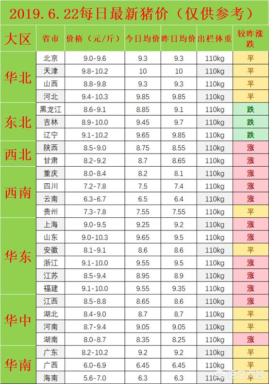 6月22日生猪价格,全国共有12地上涨,3地下跌,11地与昨日持平,福建猪价破10,目前共有8地最高猪价达到10元以上。
