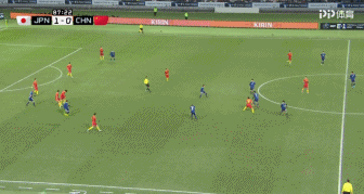 其实中国队本来有机会首开记录的。这就又得夸一下里皮超强的阅读比赛能力了,他通过上半场的比赛,敏锐地发现了日本队左路的漏洞,即日本队左后卫21号速度偏慢且身体对抗能力不强,果断地用速度快、意识好的张文钊替下了上一场起到一定作用的高中锋肖智,配合右路的傅欢主攻日本队的左路。