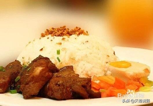 重点介绍一下 菲律宾 的米饭他们一般不吃白米饭,吃的是garlic rice,也就是大蒜米饭。当然不是放很多大蒜在里面,而是饭里有炒熟的蒜粒,简直不要太香。