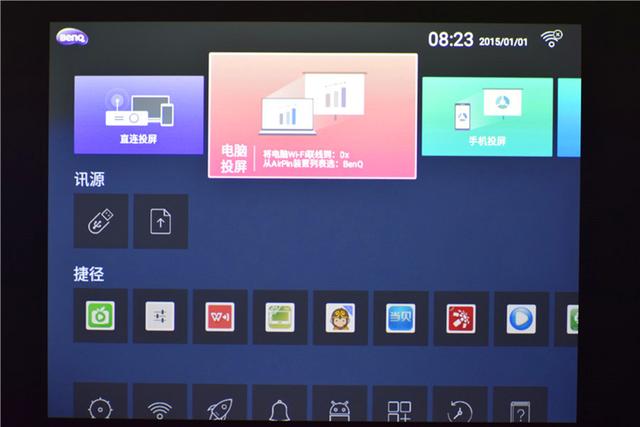 前面说过在投影仪的后侧有着丰富的接口,其中就包含两个USB接口,而在主界面中的讯源中可以看到有U盘直读、文件传输等功能,U盘直读支持多种形式的文件,图片/文档/视频等都可以直接播放,除此之外,还可以在主界面中看到这款明基E520还包含有丰富的软件资源,无论是儿童还是成年人都可以从中找到自己需要的内容,还是非常不错的。