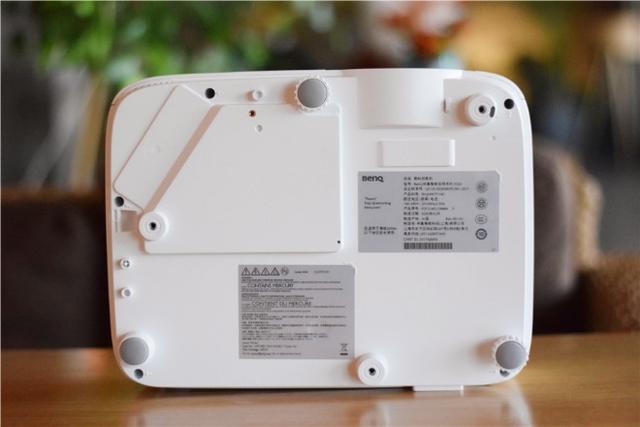 在投影仪的正前方有着投影镜头,投影镜片采用的是全玻璃、低色散镀膜镜片,这种镜片最大好处就是使用久了也不会产生虚焦的情况,进而影响投影仪的使用,灯泡使用寿命上,由于采用了独家智能节电技术SmartEco®,可以根据输入内容的动态显示内容来自动调节灯泡能耗,根据官方介绍,如果每天使用时长在4小时左右的话,那么这款投影仪可以连续使用10年,这么长久的使用在市面上其他投影仪的身上可并不多见。
