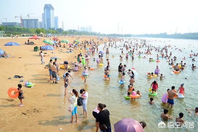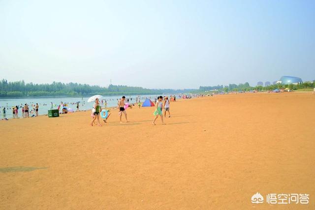 庙会人山人海(4),淇河游览区: 鹤壁市紧靠淇河,淇河是河南唯一没受污染的河,水质清沏见底,淇河沿岸几十里建成了公园,就是所谓的一河五园:朝歌文化园,植物园,游乐园(包括沙滩),淇水诗园,湿地公园。这些都是免费的。我特别喜欢沙滩,每到夏天,本市的,外市的人们带着孩子来沙滩嬉戏和游泳,特别热闹。