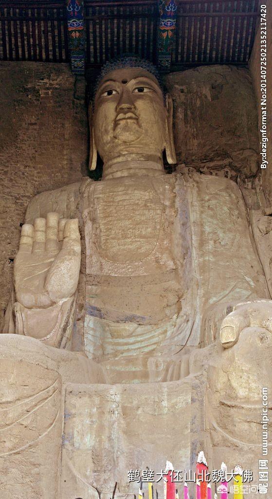 小镇淇河游览区伾山大佛谜底 : 伾山大佛虽高八丈,但有一丈多的小腿和脚是在地平面以下的,所以七丈高的楼,完全可容下大佛了。