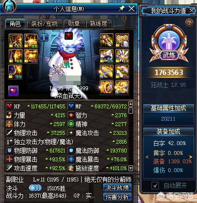 拿上面这个红眼说吧,打造优秀!全身红11,站街4215力量,在各种细节方面都很完美,升级的是自己本名重甲,属强是349的光强。还有血气唤醒的白金徽章,伤害15s有358E,说高不算高,当然也不算低,当代版本究极体毕业完美打造的成绩。