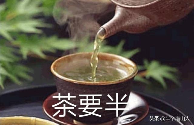 2.半茶:客人来时,主人给客人奉茶要半分满,茶若倒满了烫手,客人不好拿,不好饮,有赶客人走的意思(茶满欺人)